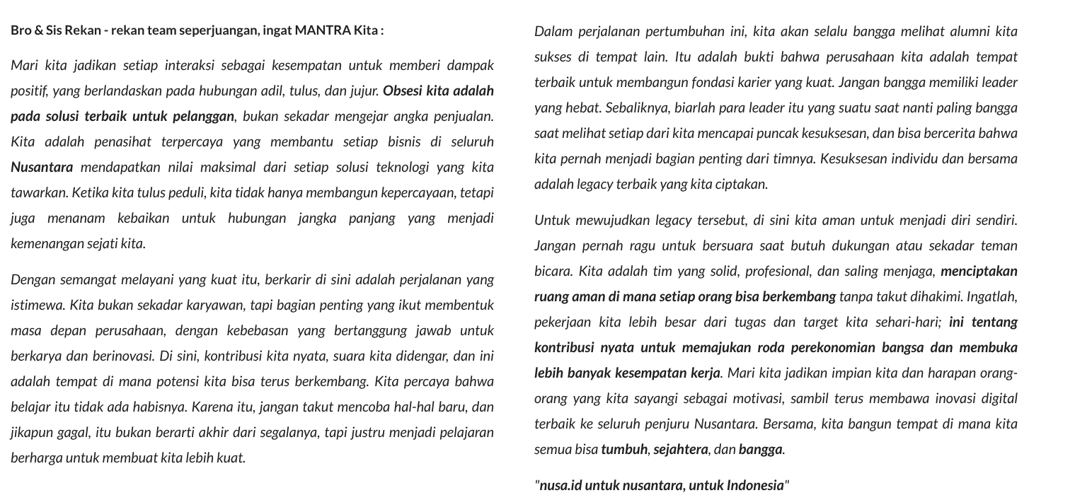 Lebih dari Sekadar Pekerjaan: Mengenal "Mantra" sebagai DNA Budaya Kerja nusa.id cloud